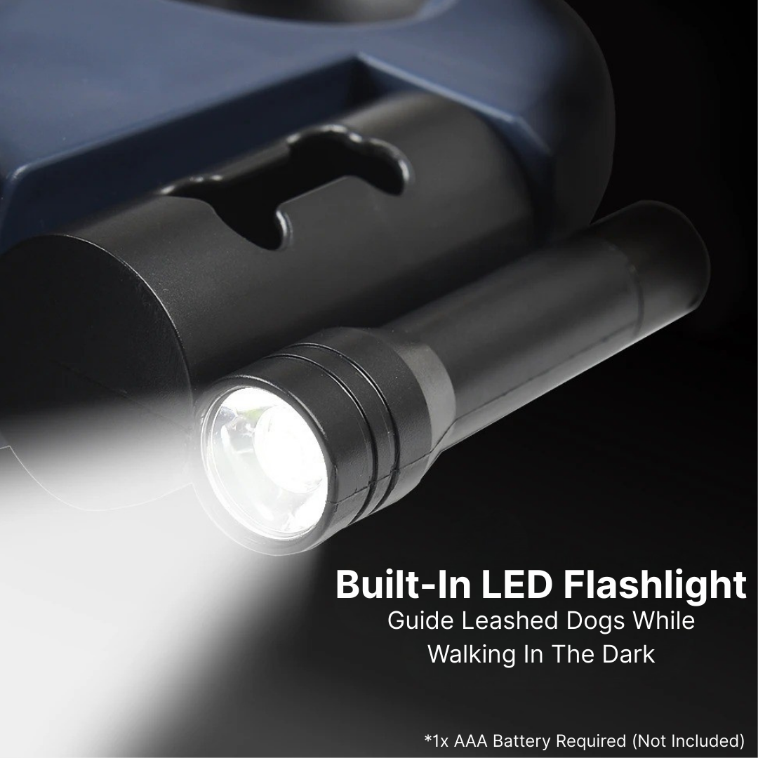 🧰 All-In-One Convenience Design: Never forget your waste bags again with our built-in poop bag holder for hands-free convenience. This compact, durable tool streamlines your walk by combining two retractable leashes, a powerful LED light, and a storage into one sleek handle.